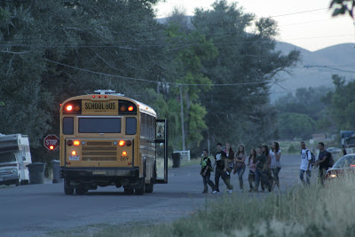 I am going to be completed honest this year I struggled with sending my kids back to school. I had a goal this summer that didn't get accomplished and that was part of my hesitation. I had some serious anxiety over sending Zeak to the Junior High. It was so bad that I didn't sleep for a few nights. The day before we had a rodeo and the week before was the county fair so I was very unprepared for the first day of school. We did the necessities of school shopping 3 hours before heading to the rodeo. This made me crazy literally. Thank goodness the rodeo ended in good time or it might have been my ticket to the insane asylum. I got the kids up and ready for school the next morning in enough time for Dan to give them all a fathers blessing before heading out the door. Zeak was so independent and wanted to walk to the bus stop alone. I let him go alone but as soon as I thought he was there I jumped in the car to take photos. Then it was back home to get the other two ready for school. I was a little bit nervous about the reality of doing my little girls hair but the sad truth is she hates it when I do her hair. She will let anyone else including her dad do her hair. So I convinced her to let me at least curl it a little and put a bow in it. The next fight was that she didn't want a Father's Blessing? She is terrified of them. I don't understand because she has watched the boys and Jake even went before her and nothing happened but she through a screaming fit. Finally we were ready and out the door to get the Williams' for some traditional back to school photos. Tina was even dressed and went into the classroom with Kaci and Kyler. When we picked them up from school there was nothing but smiles. Tina and I walked up to get Kaci and Kyler and we stopped for a short visit at Delora's. We had lunch together and then played while waiting for the time to get Keanna and Jake. What a relief everyone loved their teacher and was excited about being back in school. My favorite quote of the day was from Zeak, "mom I love Junior High it is way better than elementary school I don't have to sit in the same room, at the same desk, with the same teacher all day." Yay I fill a LITTLE (very little) better about sending him to Junior High. This morning when I went to take him to the bus because we were a little late getting up. He said, "mom why did you follow me yesterday?" I said, "because I wanted photos of you getting on the bus is that alright." He said, "yes just don't do it again please.!" My kids are growing up! They don't need me anymore I am mostly alright with it but, there is a part of me that is really sad about this new stage in our life!
